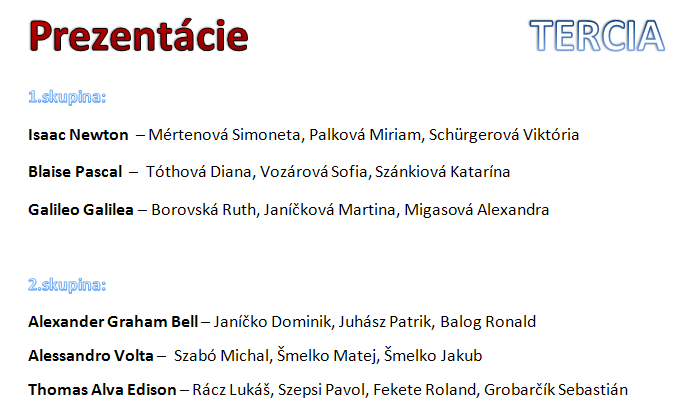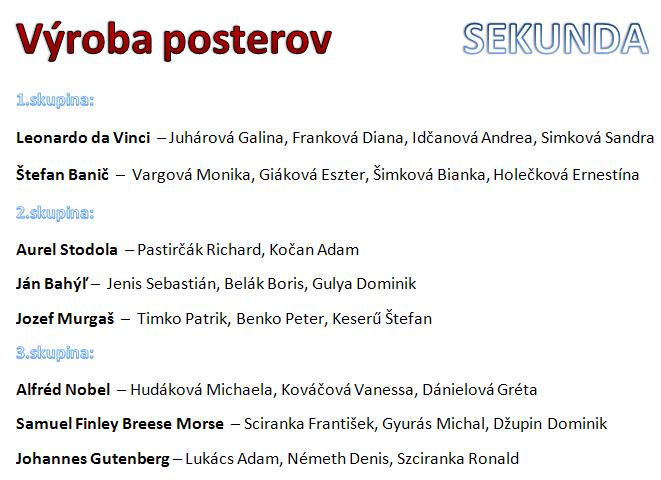 Rozdelenie do skupín (december 2012): II.OA (sekunda)